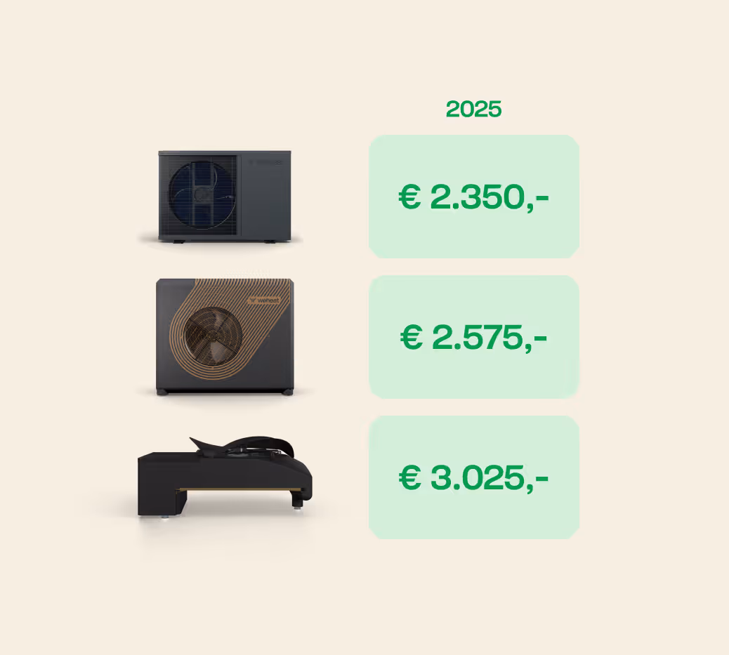 Alle Weheat warmtepompen zijn bekroond met een A+++ energielabel, waardoor je gebruik kan maken van hoge subsidies. Deze vraag je gemakkelijk aan na plaatsing, eventueel kan je installateur je hierbij helpen.